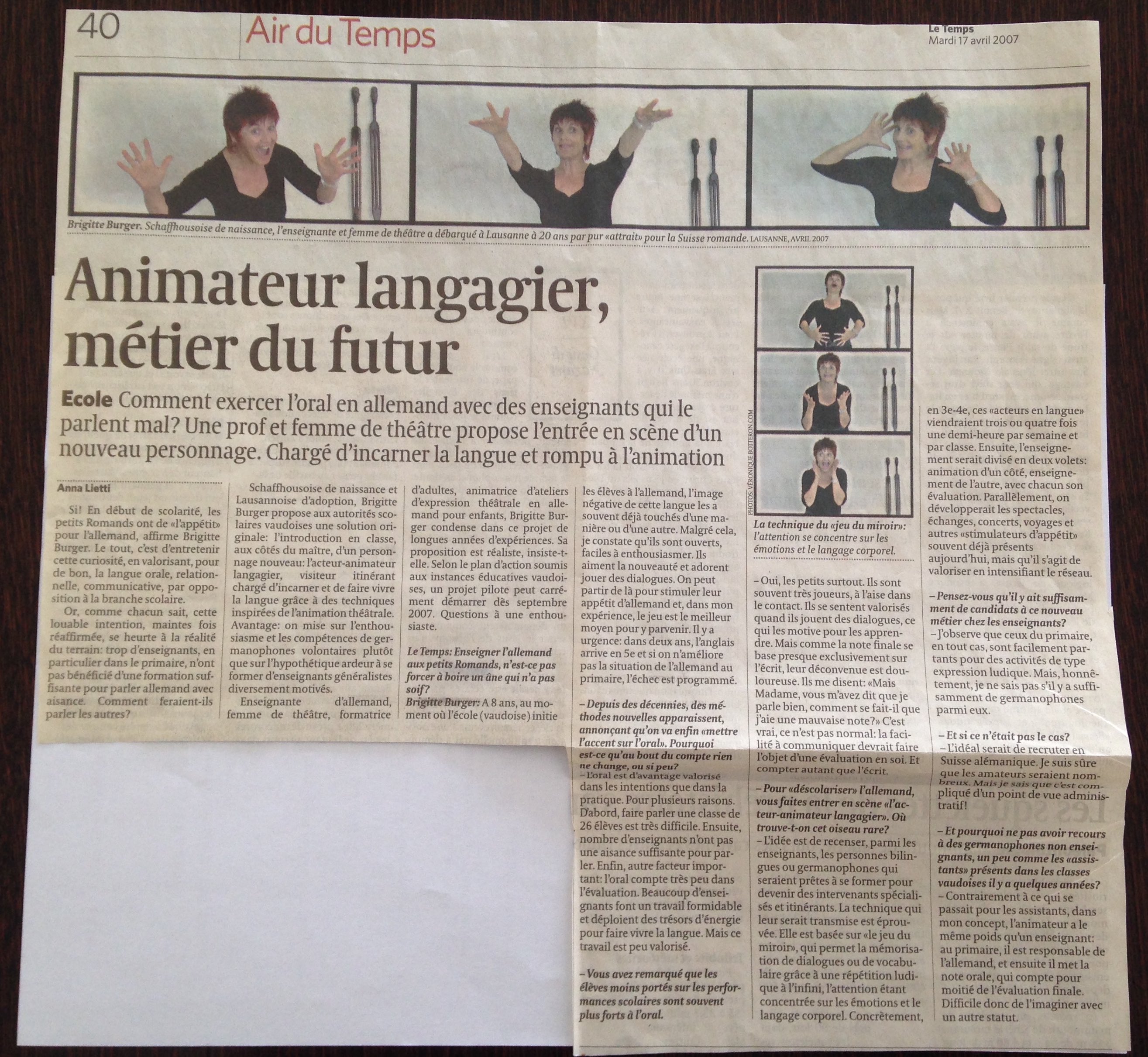 La journaliste Anna Lietti réalise l’interview de Leela Brigitte Burger dans l’article “Animateur langagier, métier du futur” du Temps (17 avril 2007).